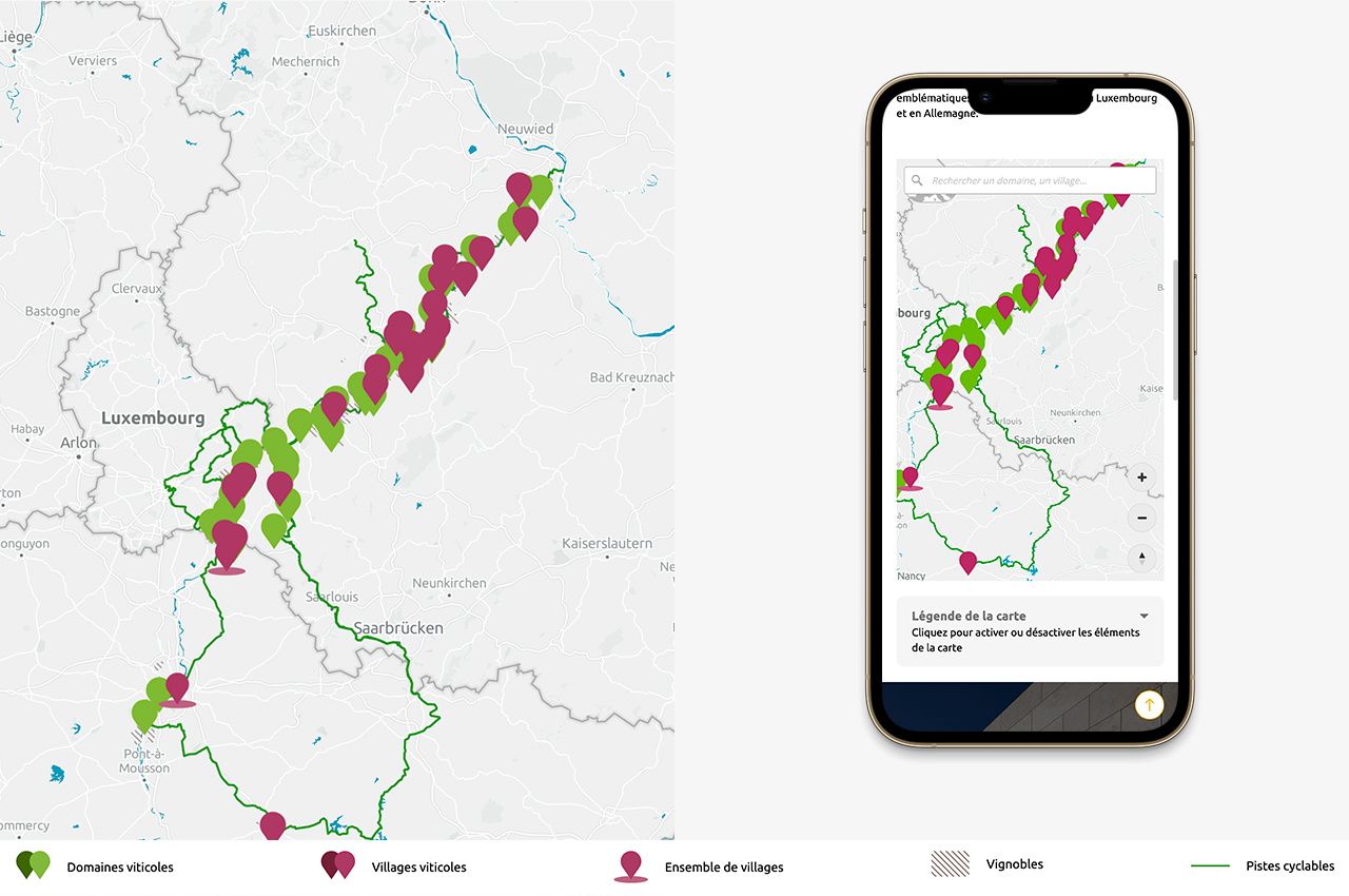 Grâce au site doté d’une carte interactive, l’internaute peut ainsi planifier son voyage dans la vallée de la Moselle. Il pourra retrouver une sélection de villages et de domaines viticoles à ne surtout pas manquer et découvrir des photos et/ou en apprendre plus sur l’histoire du lieu. Une suggestion de restaurant et d’hôtel est également mis à disposition afin d’organiser au mieux leur itinéraire.